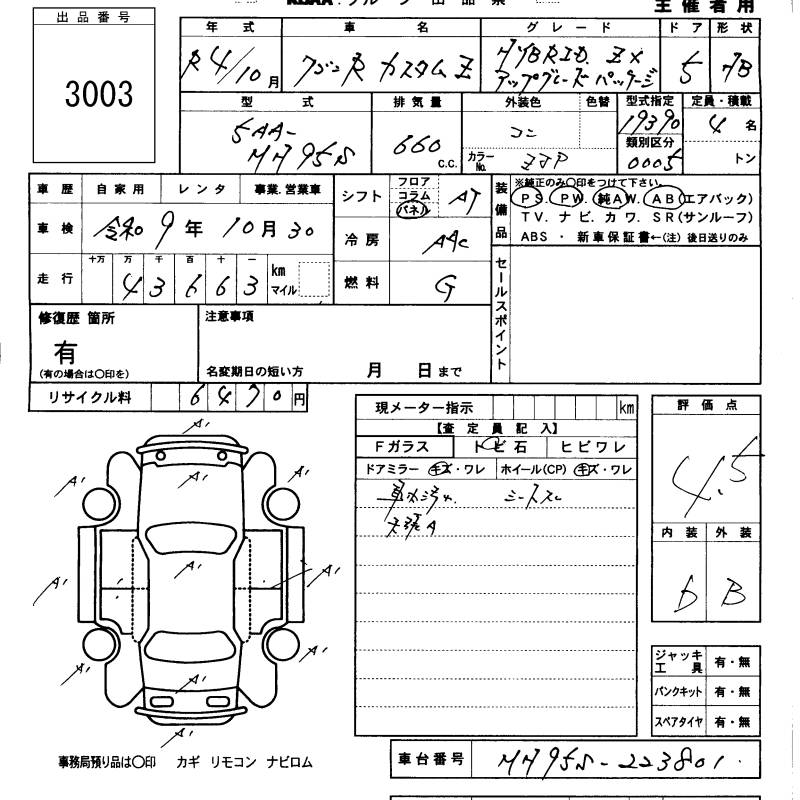 SUZUKI WAGON R CUSTOM Z - лот 3003