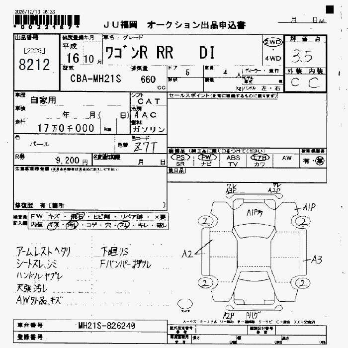 Все аукционы SUZUKI WAGON R RR