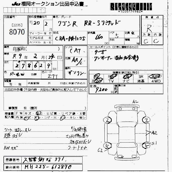 Все аукционы SUZUKI WAGON R RR