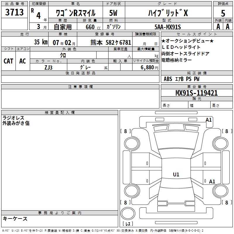 SUZUKI WAGON R SMILE - лот 3713
