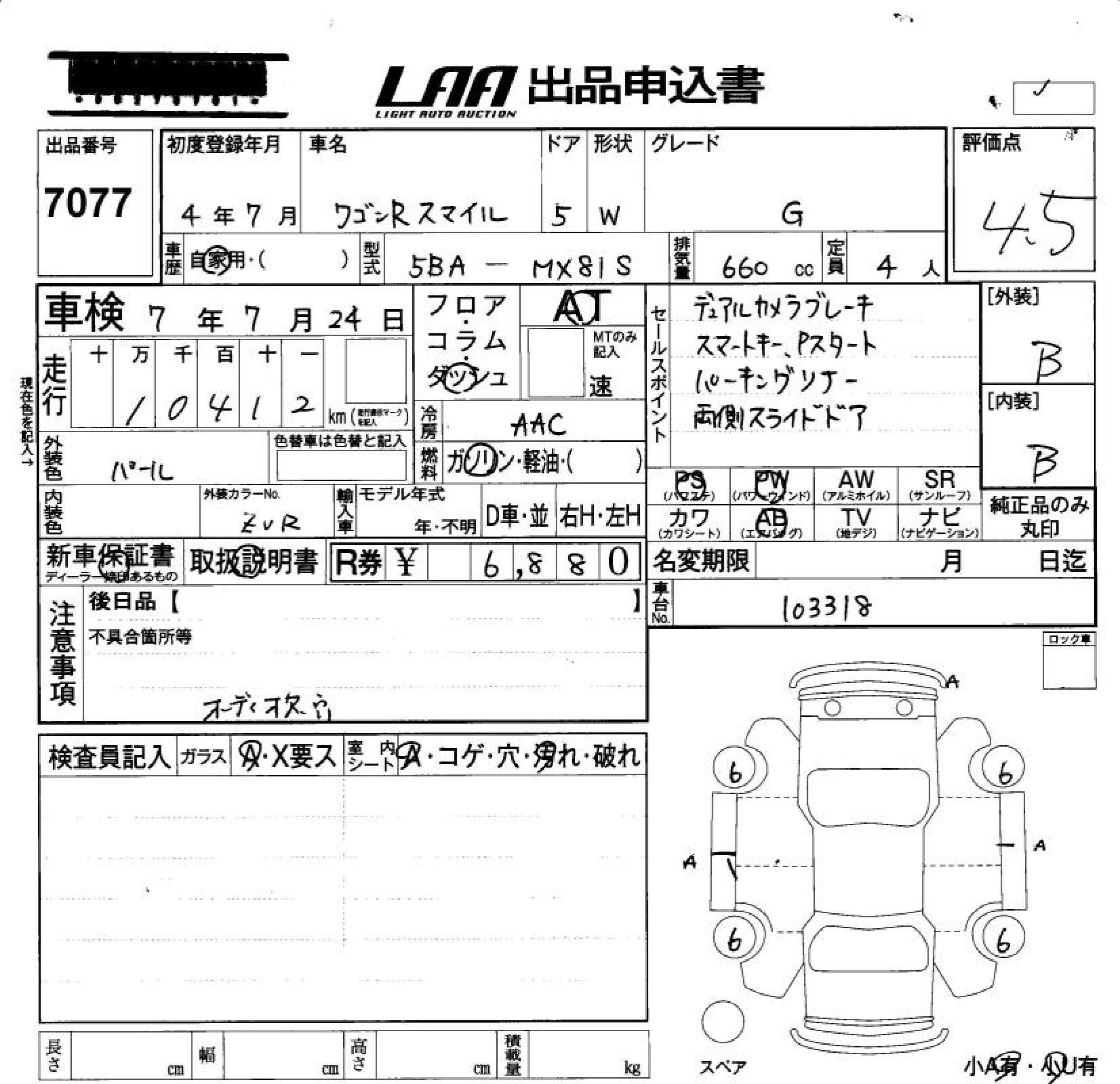 SUZUKI WAGON R SMILE - лот 7077