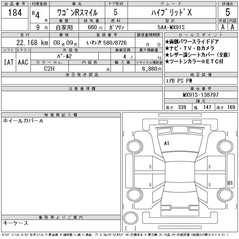 SUZUKI WAGON R SMILE - лот 184
