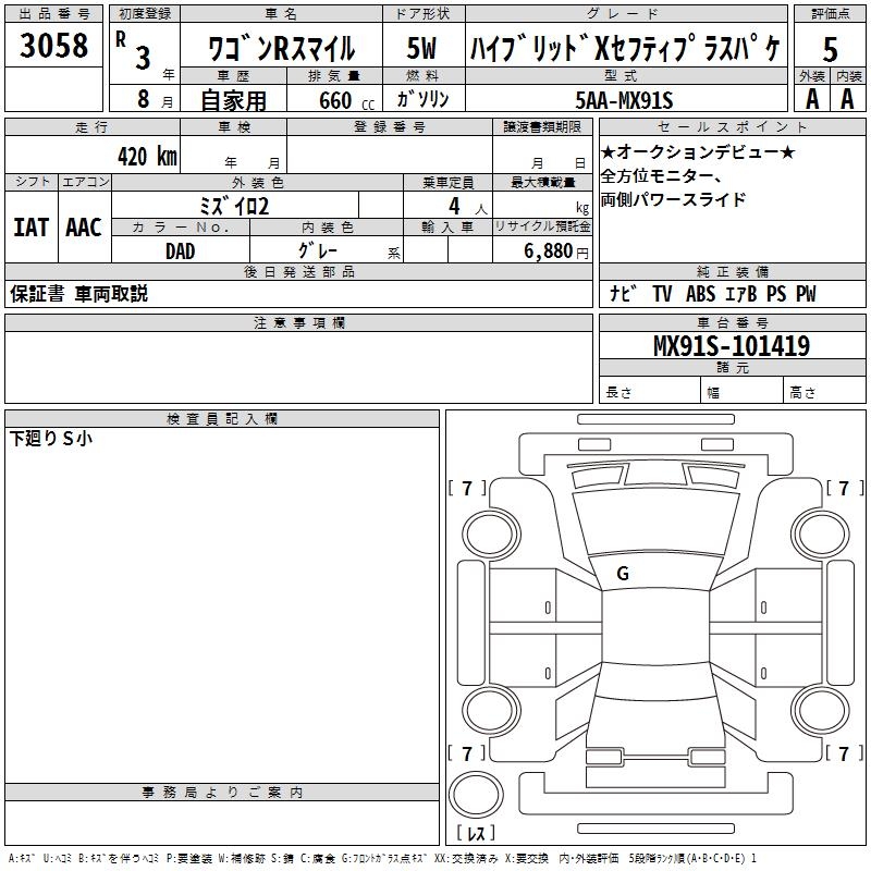 SUZUKI WAGON R SMILE - лот 3058