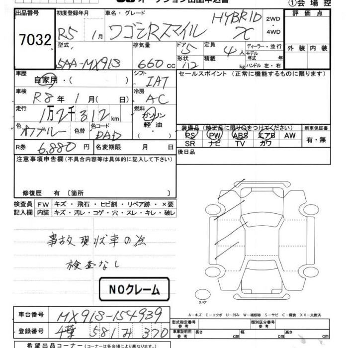 SUZUKI WAGON R SMILE - лот 7032