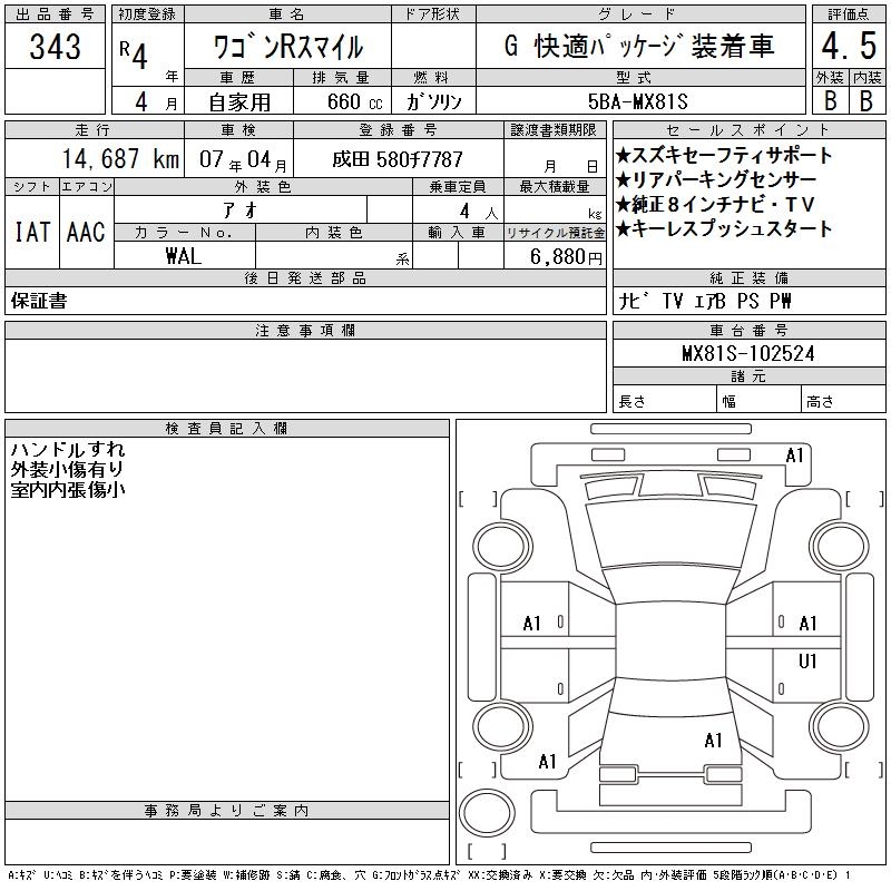 SUZUKI WAGON R SMILE - лот 343