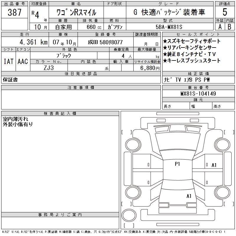 SUZUKI WAGON R SMILE - лот 387