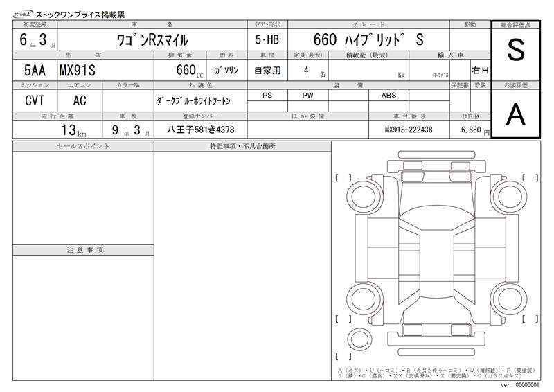 SUZUKI WAGON R SMILE - лот 6517