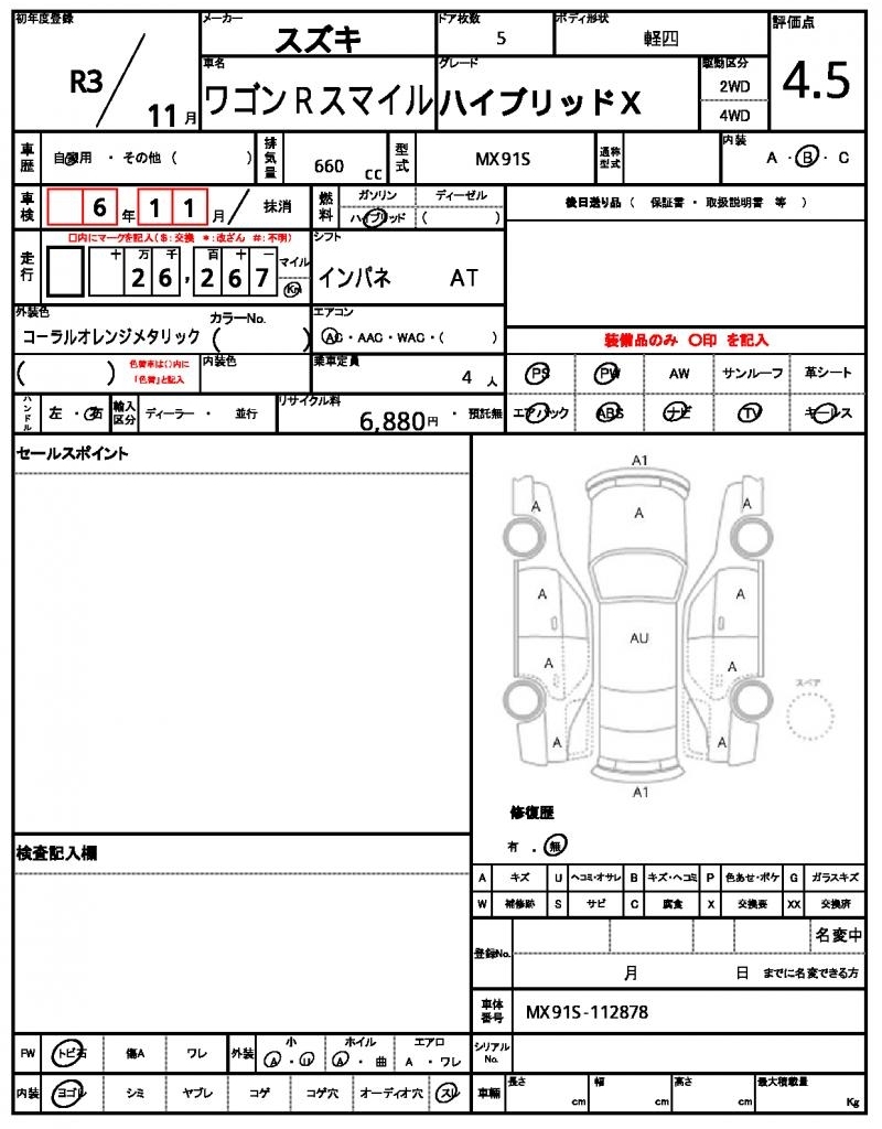 SUZUKI WAGON R SMILE - лот 57721