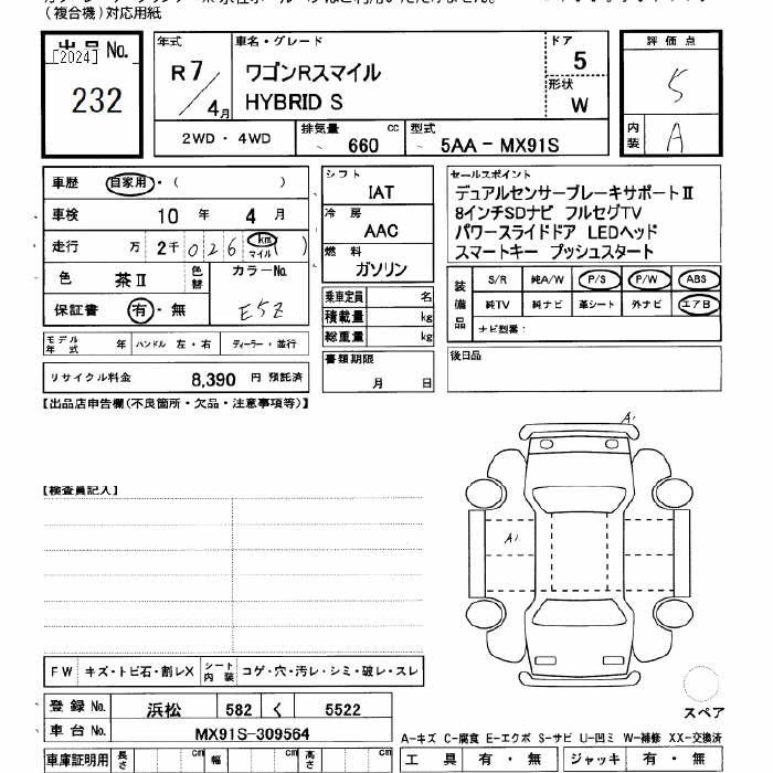 SUZUKI WAGON R SMILE - лот 232