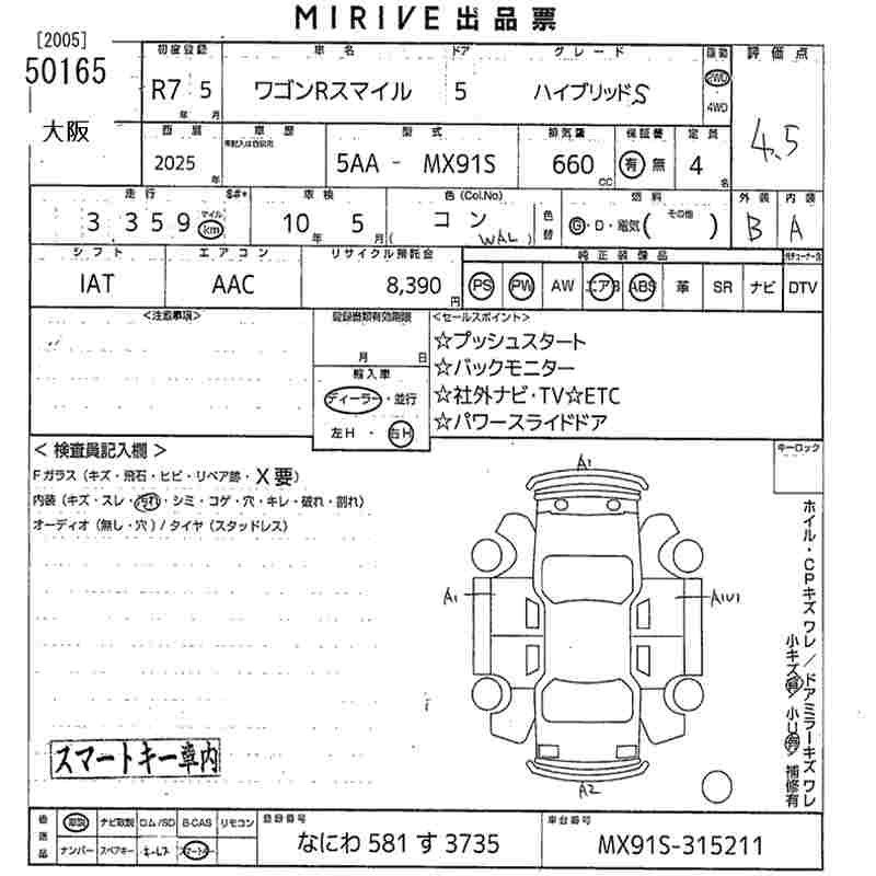 SUZUKI WAGON R SMILE - лот 50165