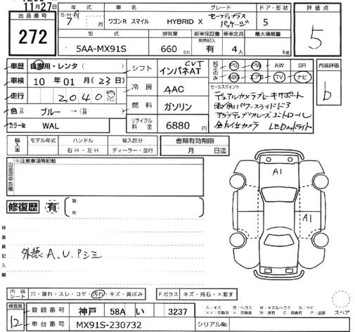 SUZUKI WAGON R SMILE - лот 272