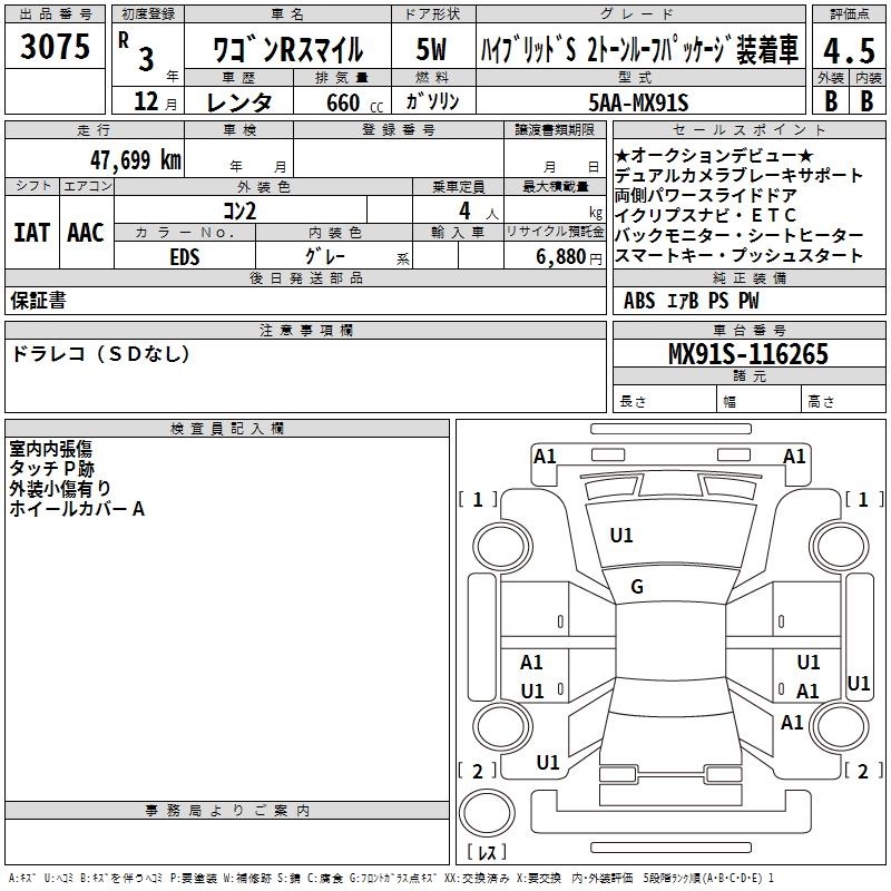 SUZUKI WAGON R SMILE - лот 3075