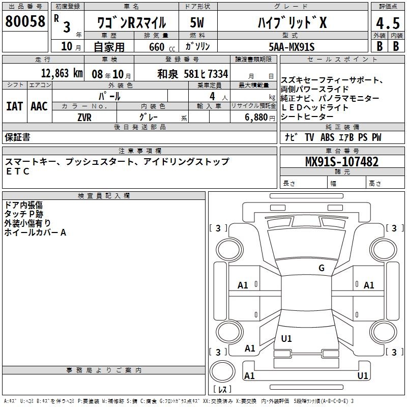 SUZUKI WAGON R SMILE - лот 80058