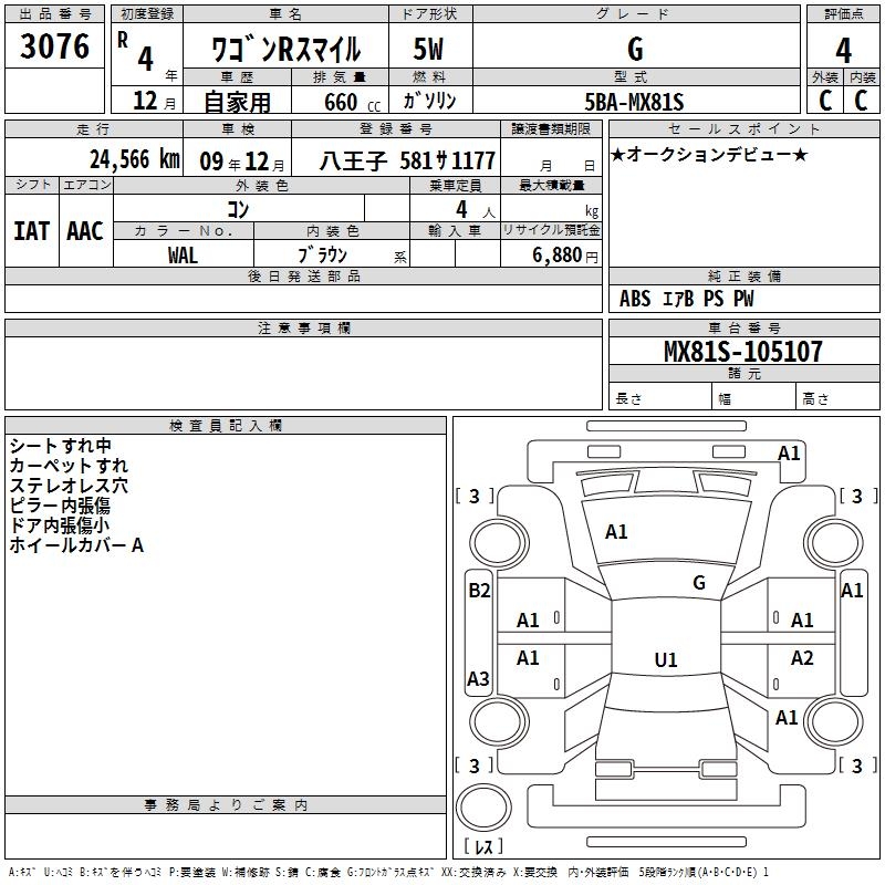 SUZUKI WAGON R SMILE - лот 3076