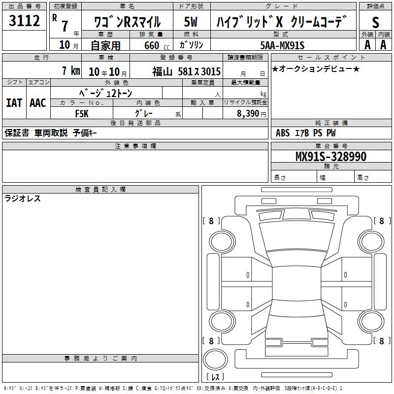 SUZUKI WAGON R SMILE - лот 3112