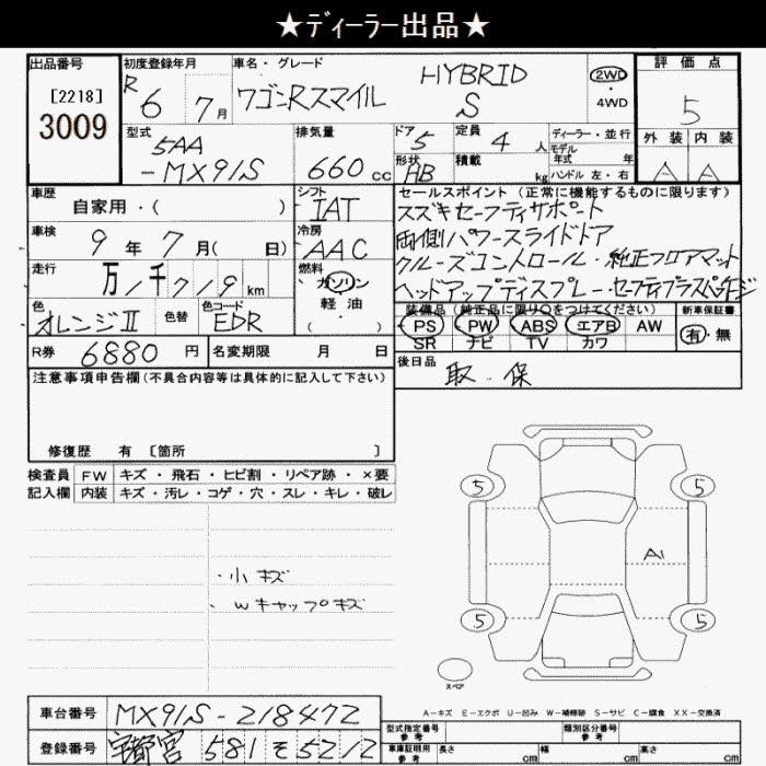 SUZUKI WAGON R SMILE - лот 3009