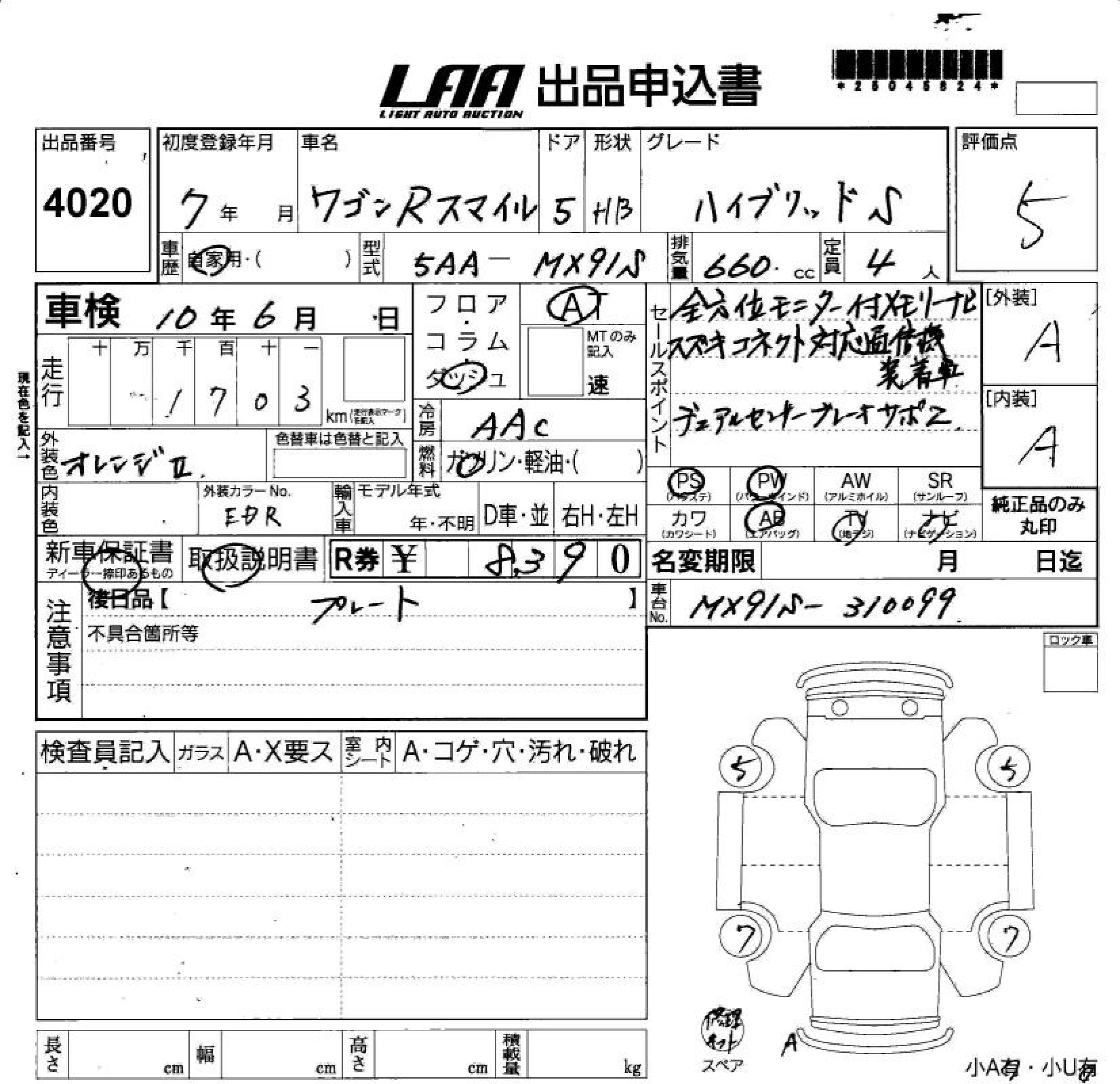 SUZUKI WAGON R SMILE - лот 4020