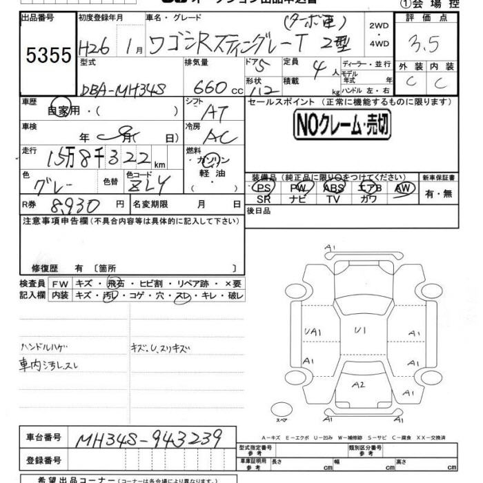 SUZUKI WAGON R STINGRAY - лот 5355