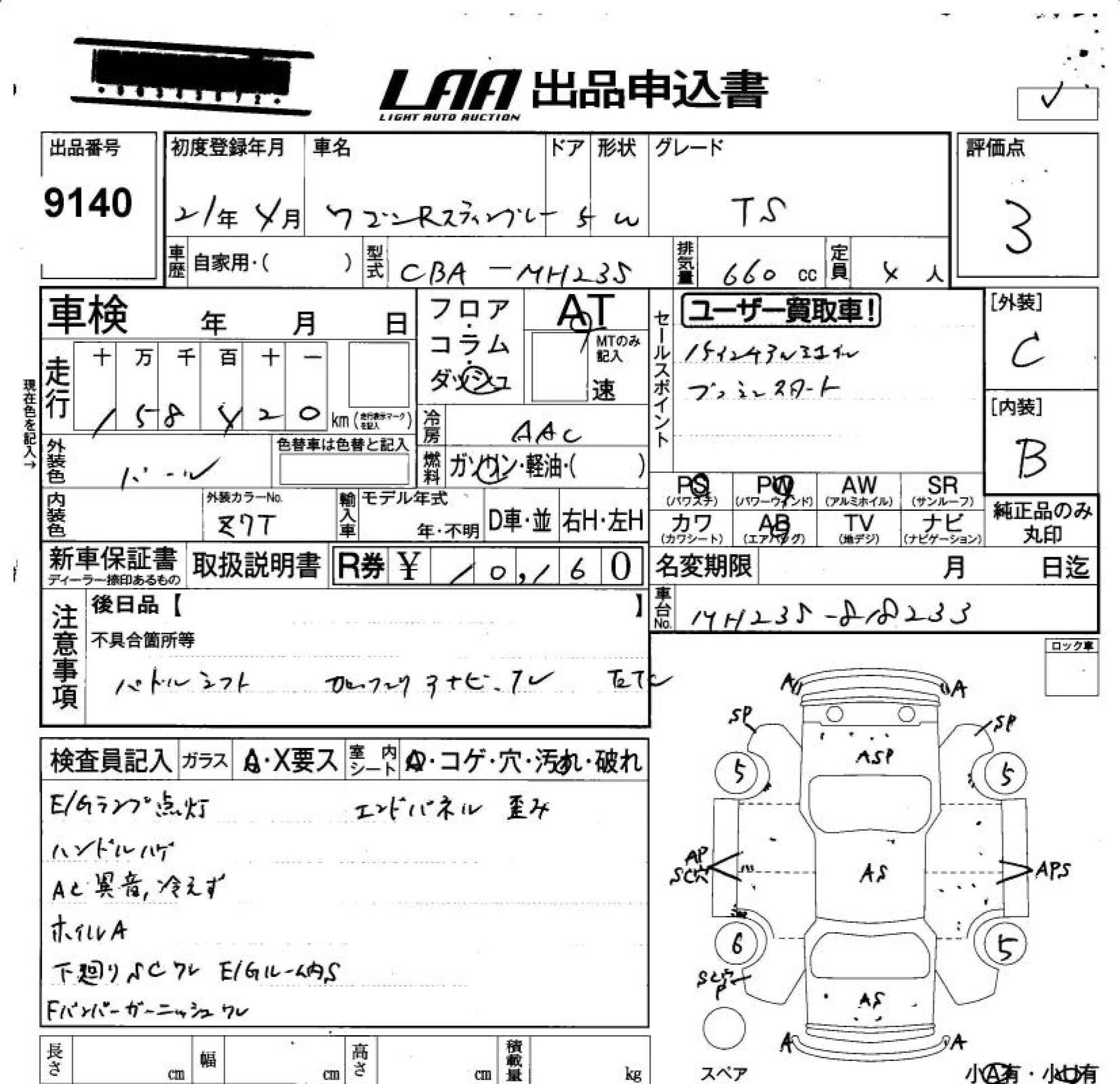 SUZUKI WAGON R STINGRAY - лот 9140