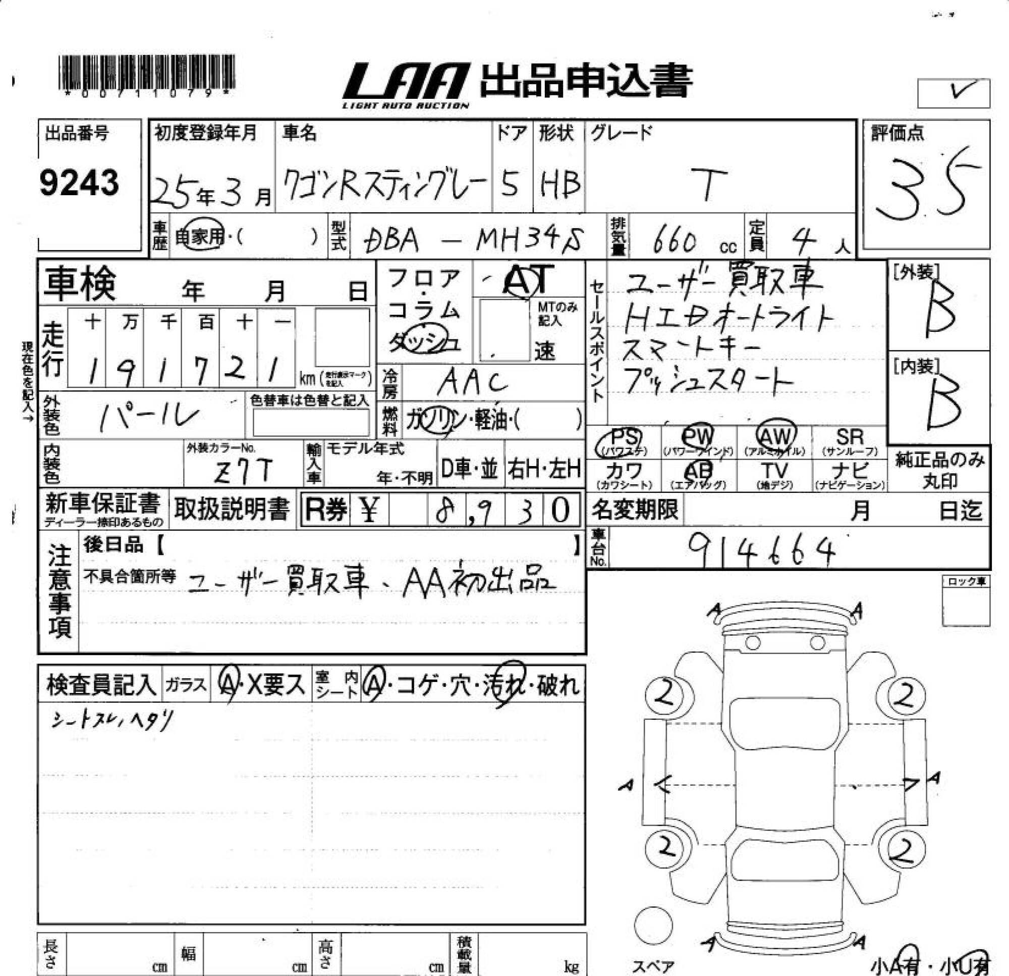 SUZUKI WAGON R STINGRAY - лот 9243