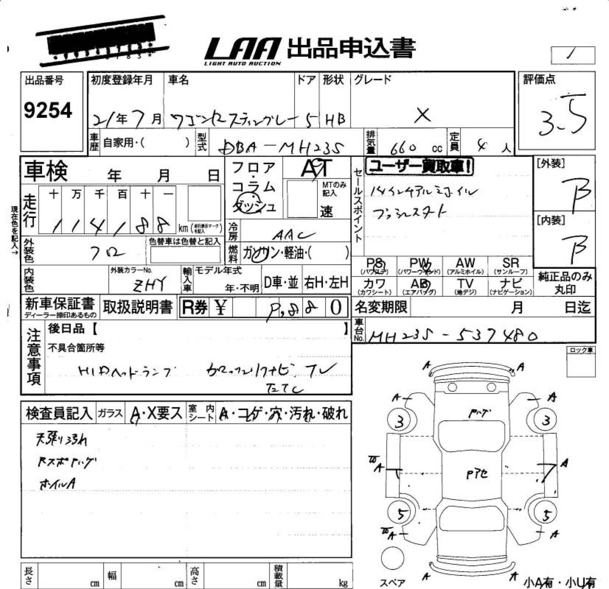 SUZUKI WAGON R STINGRAY - лот 9254