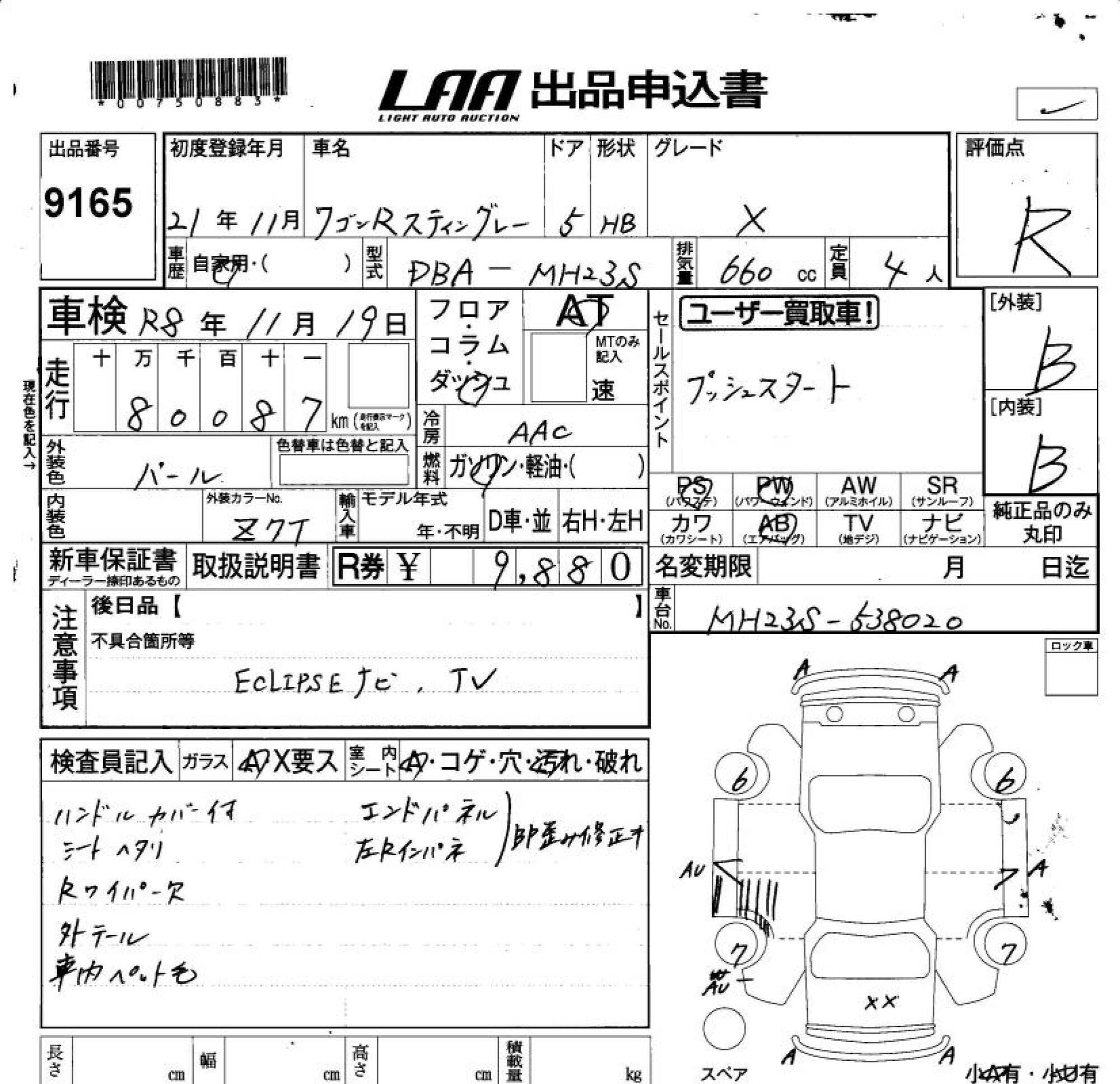 SUZUKI WAGON R STINGRAY - лот 9165