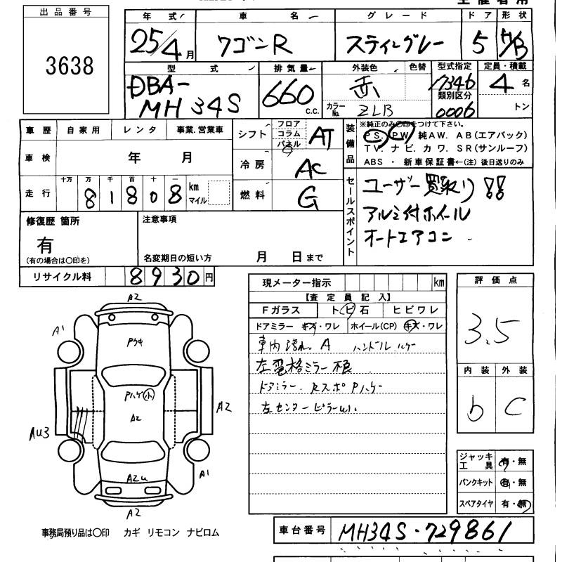 SUZUKI WAGON R STINGRAY - лот 3638