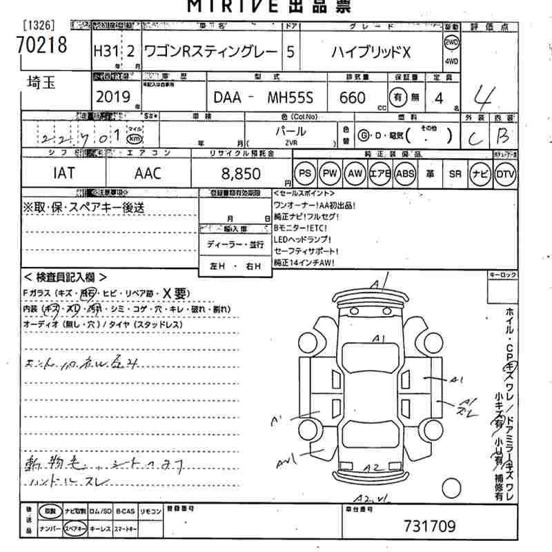 SUZUKI WAGON R STINGRAY - лот 70218