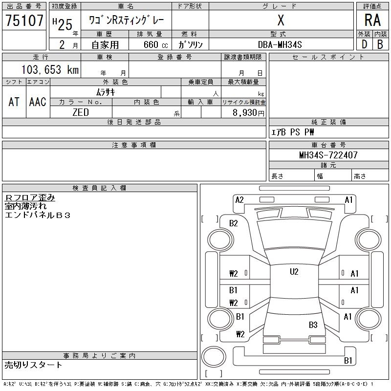 SUZUKI WAGON R STINGRAY - лот 75107