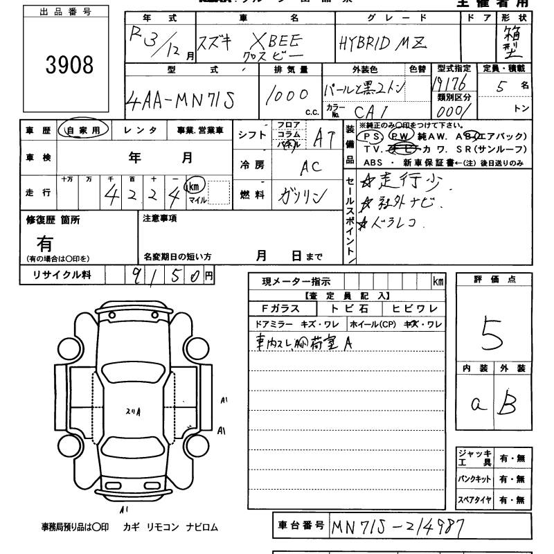 SUZUKI XBEE - лот 3908