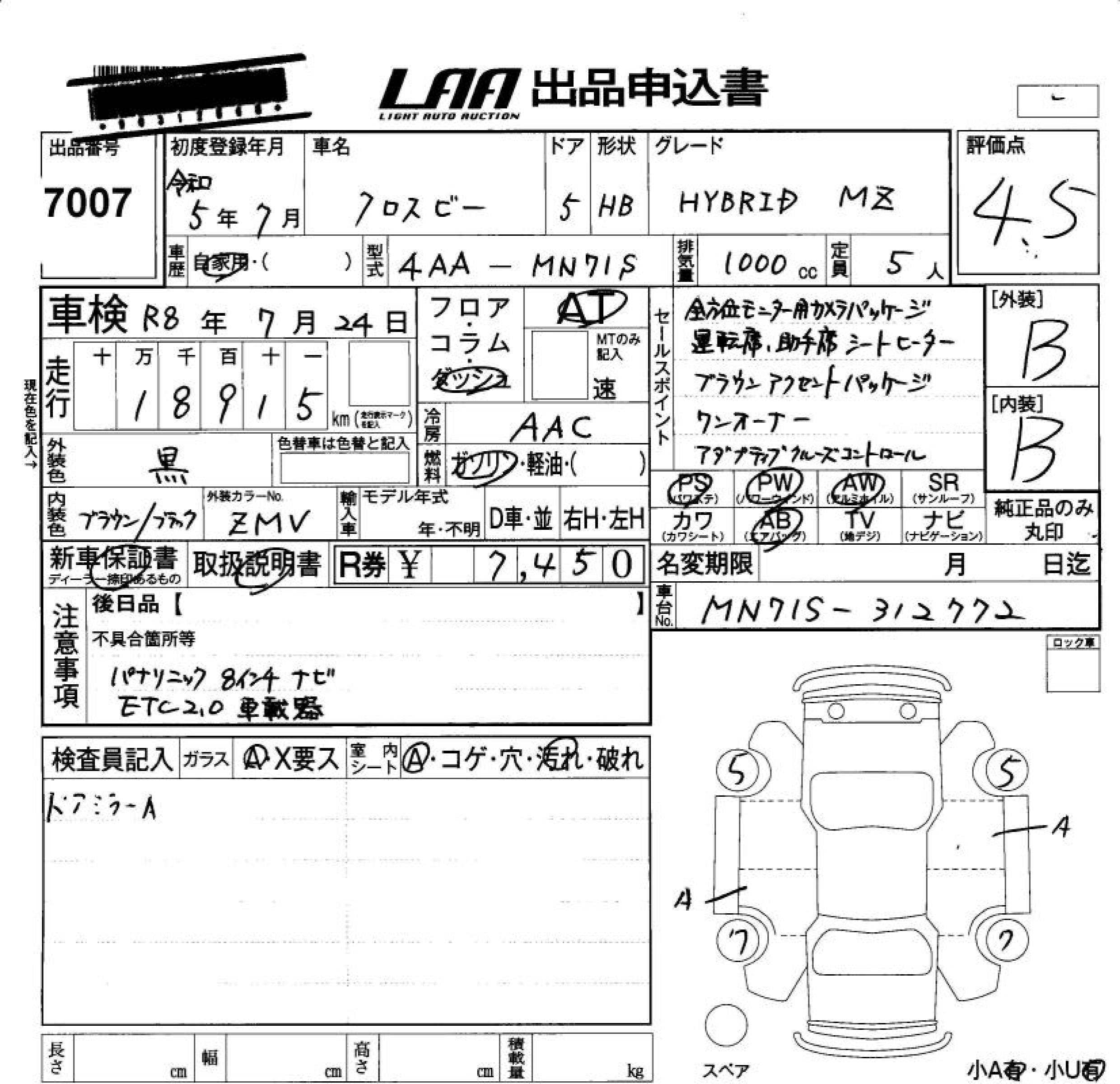 SUZUKI XBEE HYBRID MZ - лот 7007