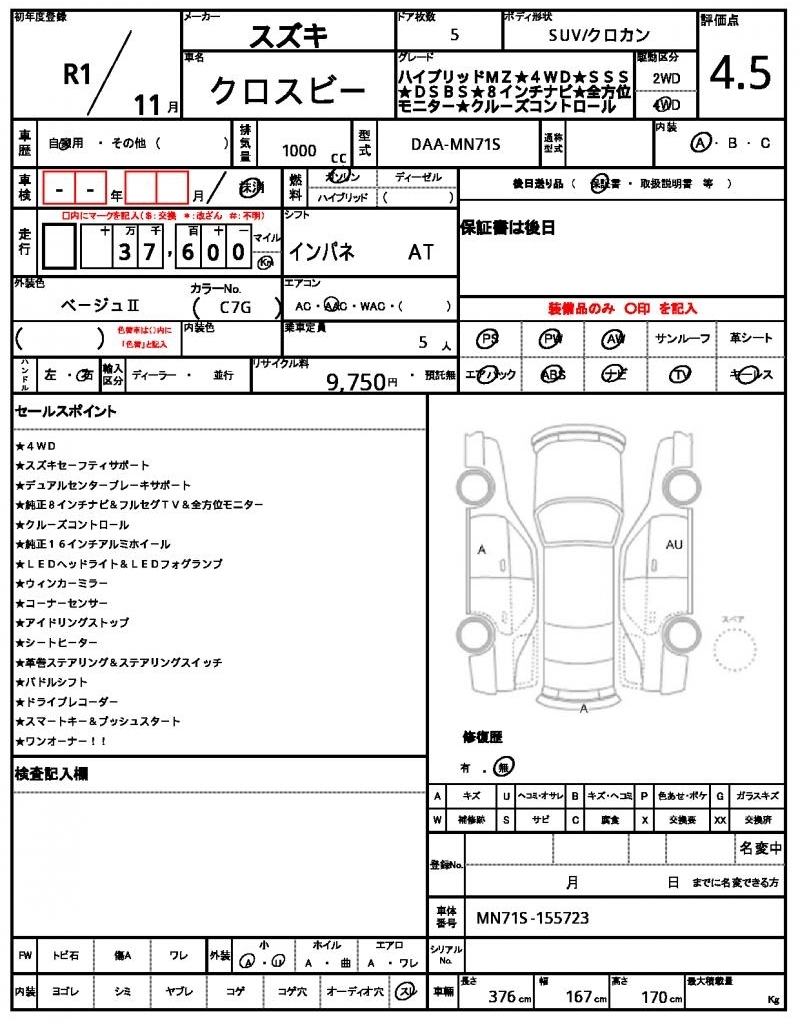 SUZUKI XBEE - лот 61097