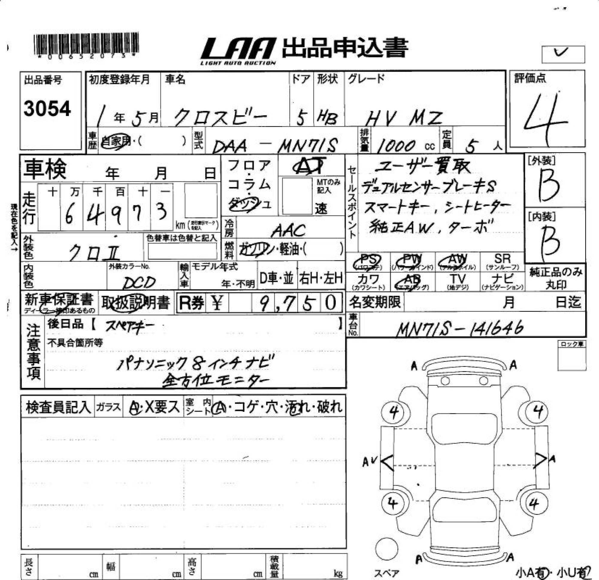 SUZUKI XBEE - лот 3054
