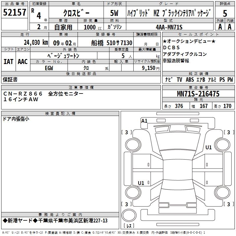 SUZUKI XBEE - лот 52157