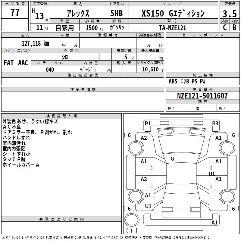 TOYOTA ALLEX XS150 G EDITION - лот 77