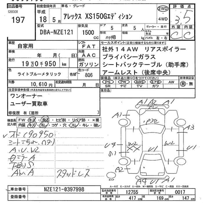 TOYOTA ALLEX XS150 G EDITION - лот 197