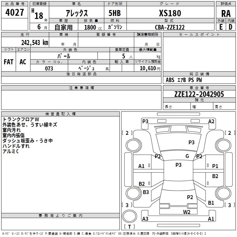 TOYOTA ALLEX XS180 - лот 4027