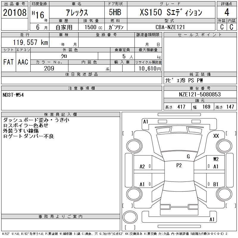 TOYOTA ALLEX XS150 S EDITION - лот 20108