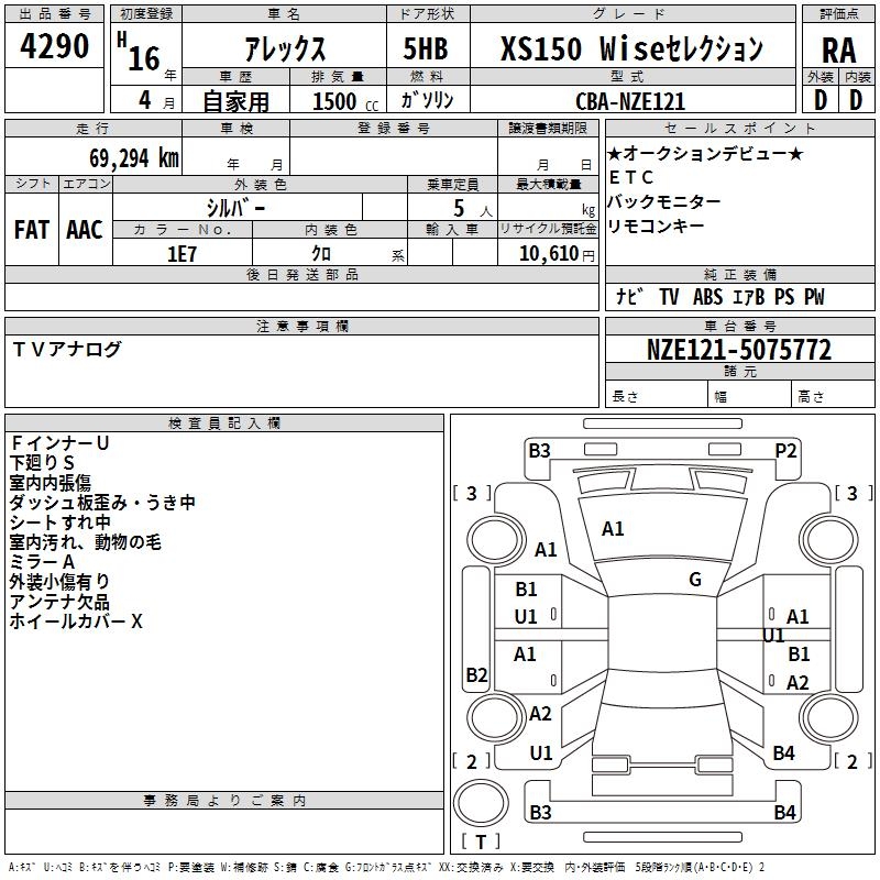 TOYOTA ALLEX XS150 WISE SELECTION - лот 4290