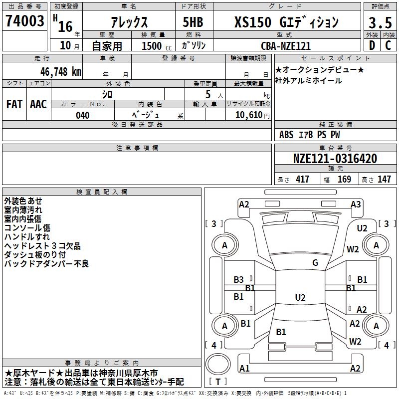 TOYOTA ALLEX XS150 G EDITION - лот 74003