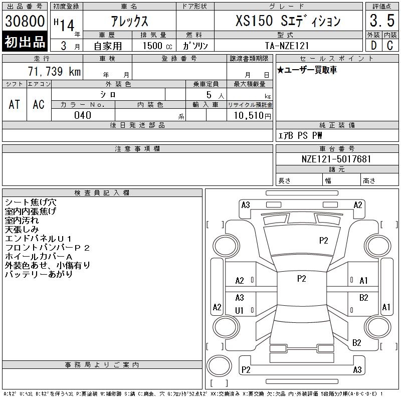 TOYOTA ALLEX - лот 30800