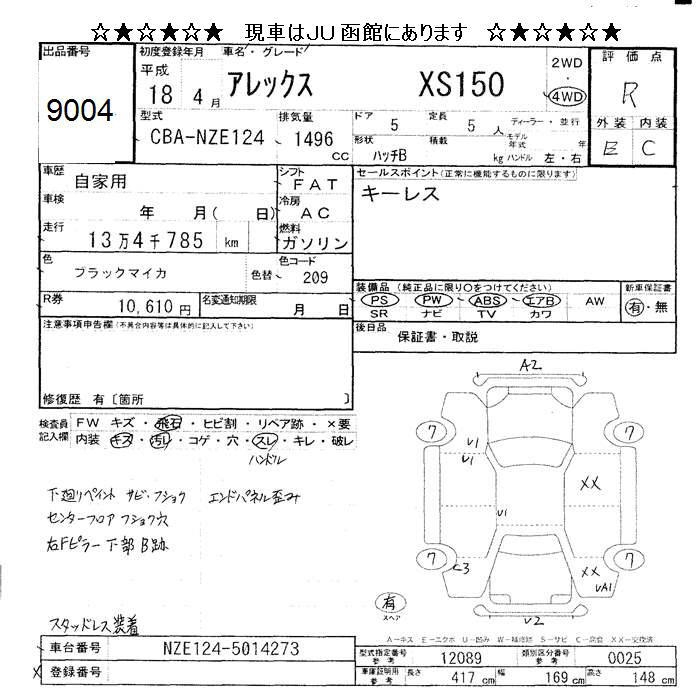 TOYOTA ALLEX - лот 9004
