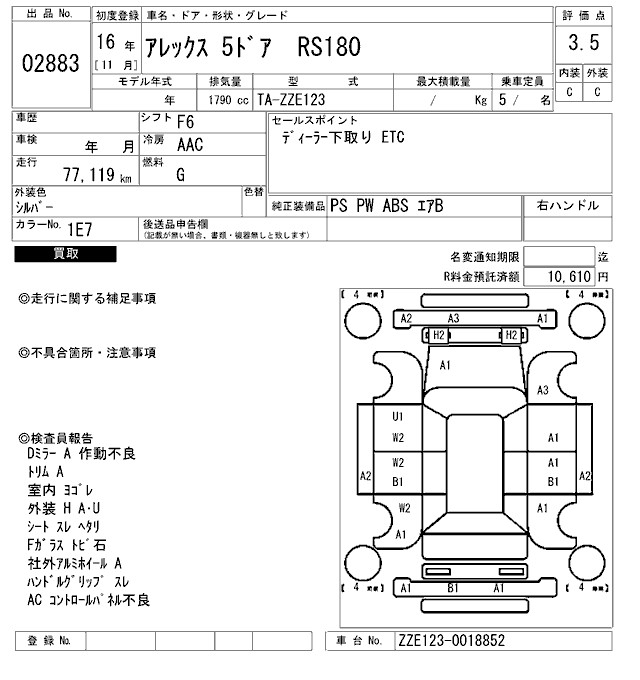 TOYOTA ALLEX - лот 2883