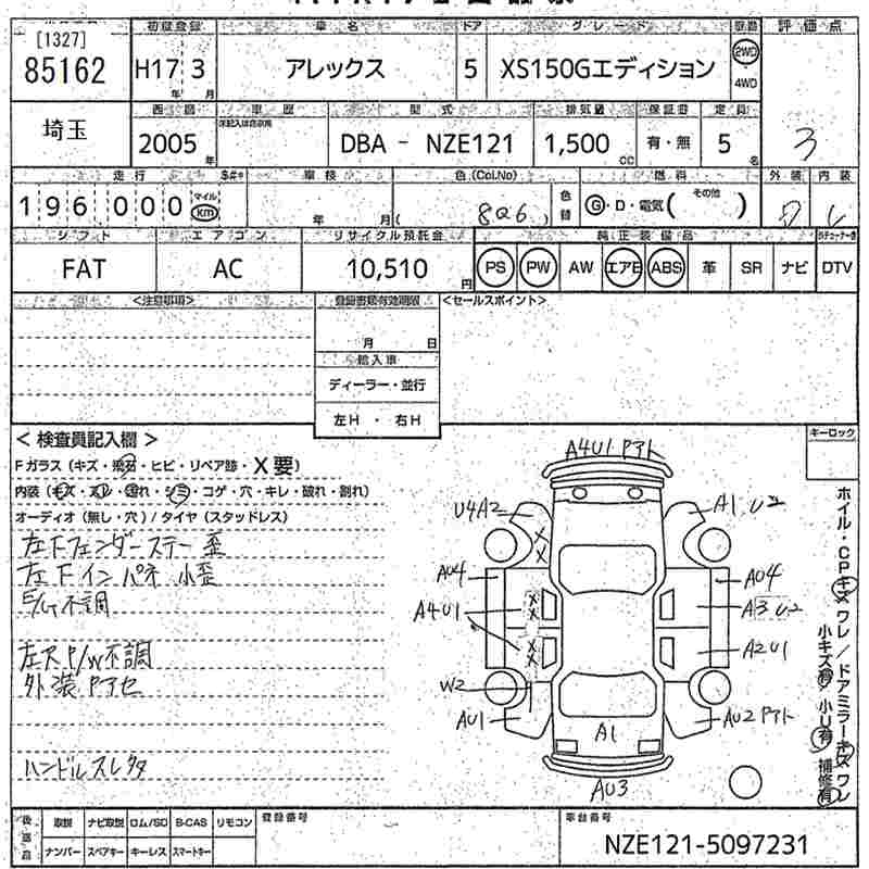 TOYOTA ALLEX - лот 85162