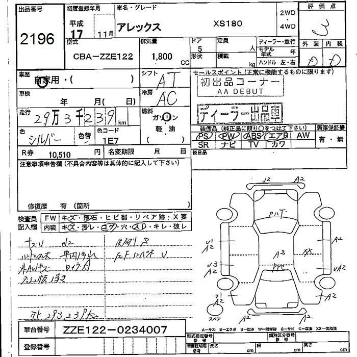 TOYOTA ALLEX - лот 2196