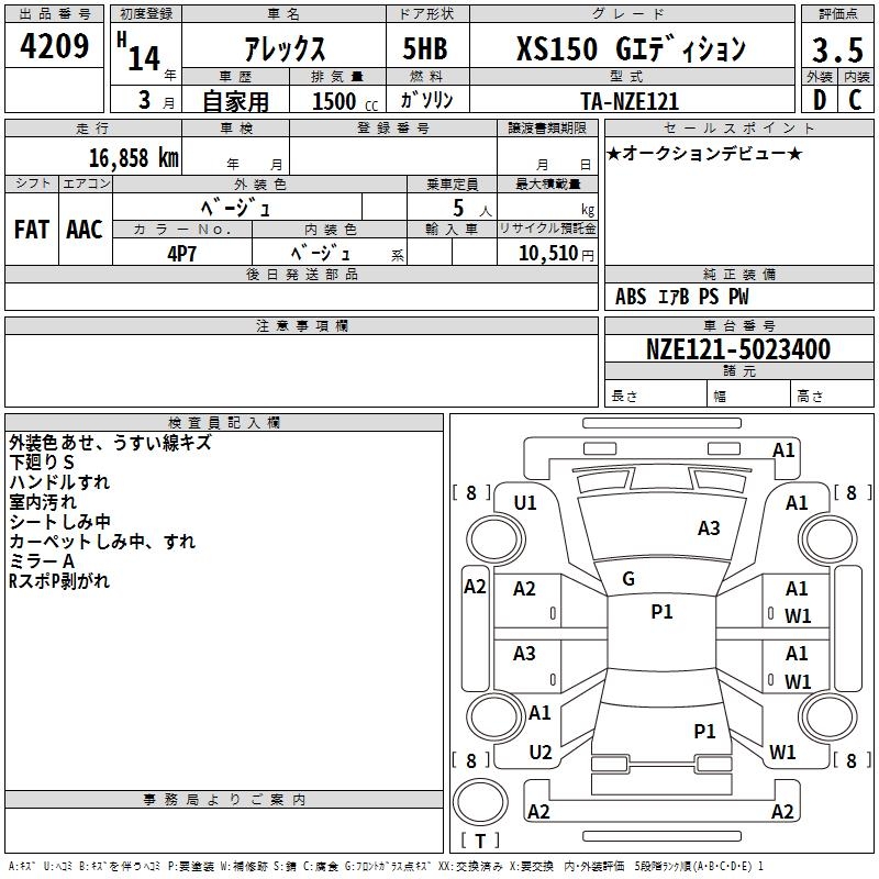 TOYOTA ALLEX XS150 G EDITION - лот 4209