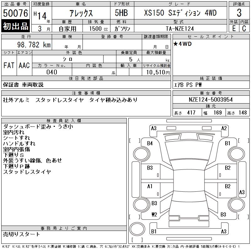 TOYOTA ALLEX XS150 S EDITION 4WD - лот 50076