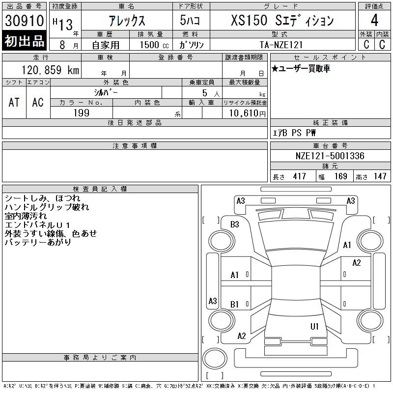 TOYOTA ALLEX XS150 S EDITION - лот 30910