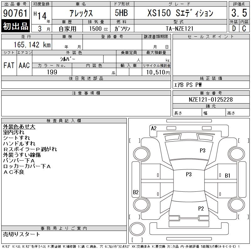 TOYOTA ALLEX XS150 S EDITION - лот 90761