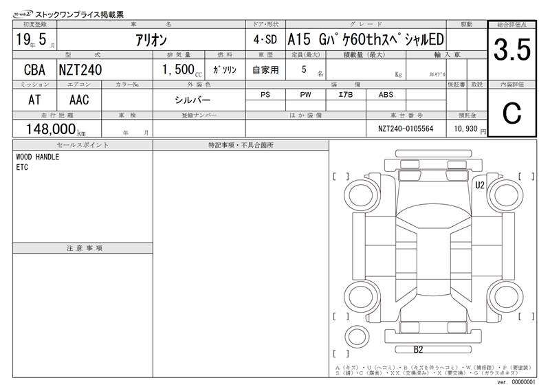 TOYOTA ALLION - лот 16799